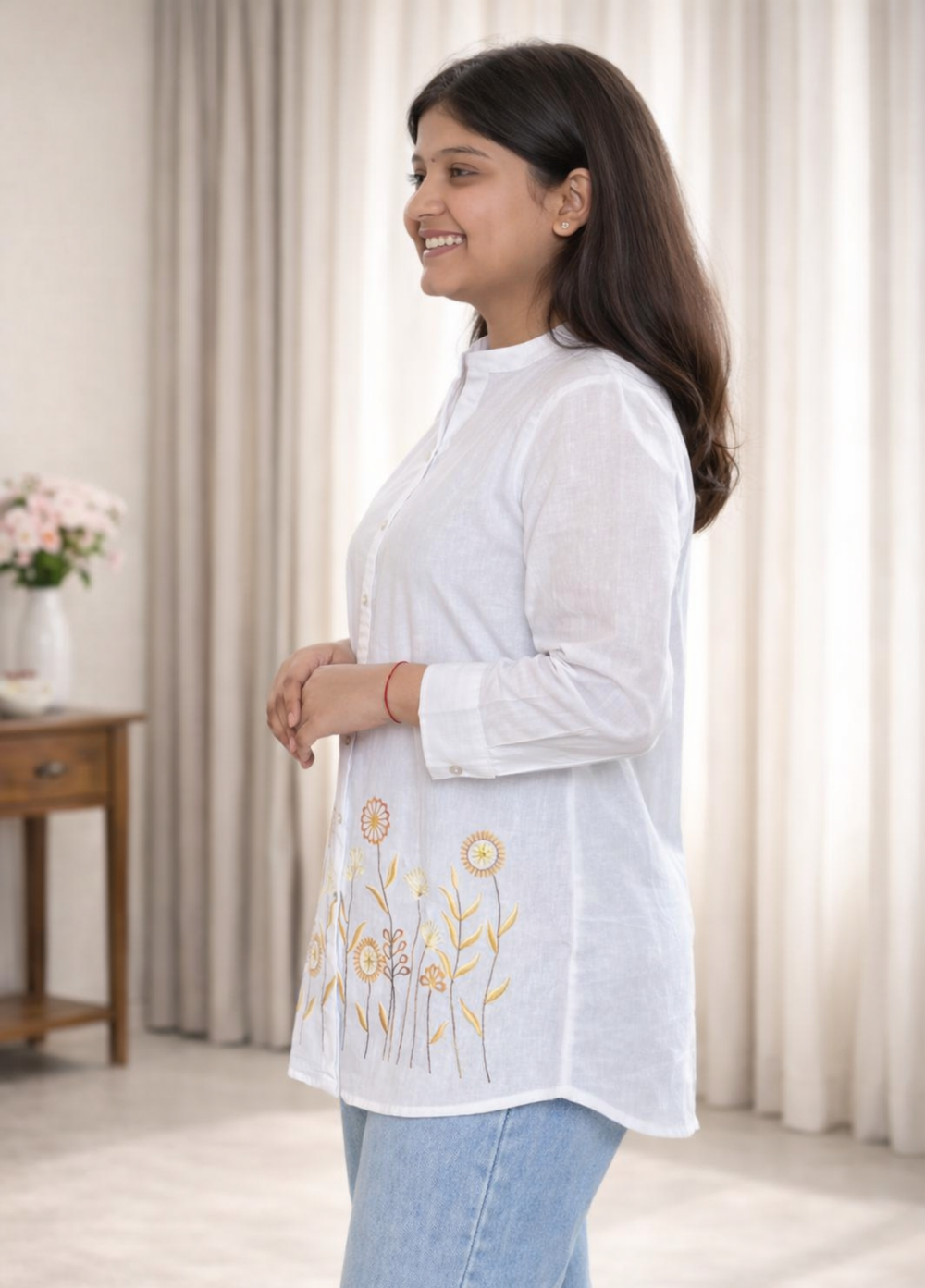 The cotton quality is amazing — breathable, light and elegant. The Mandana detailing is very premium.